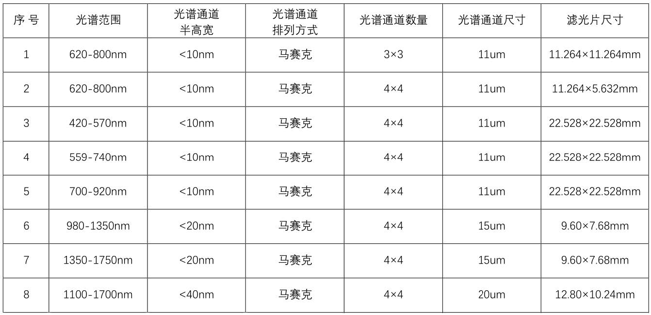 地麵光譜成像指數分析儀:分單相機成像光譜儀和雙相機成像光譜儀,單相機的光譜範圍及通道數等如表1 所示。雙相機是將表1 中兩個多譜段相機通過**技術在不降低空間分辨率下實現18~32 個波段的圖像與光譜數據的融合。地麵成像光譜儀的性能參數如表2 所示。